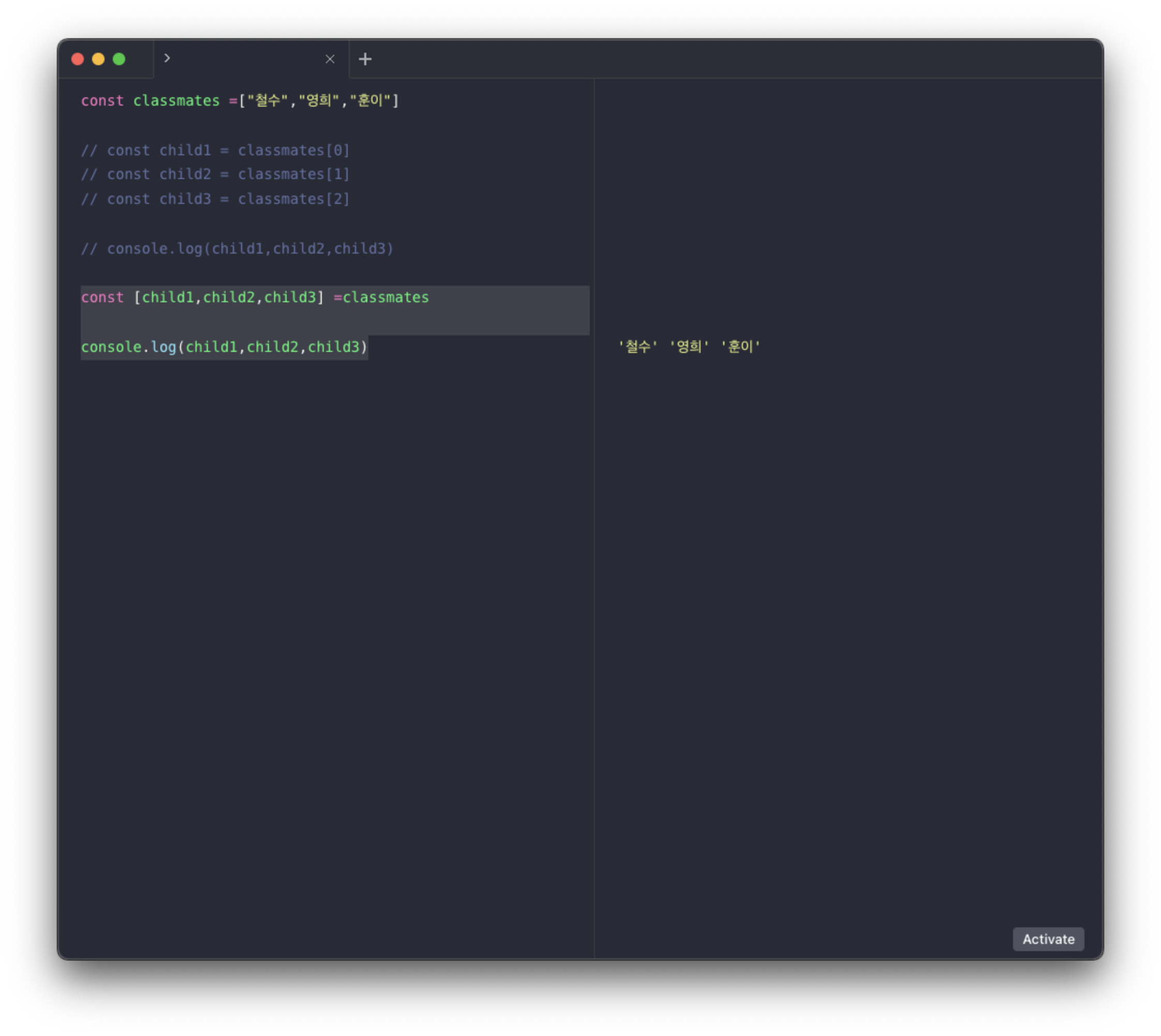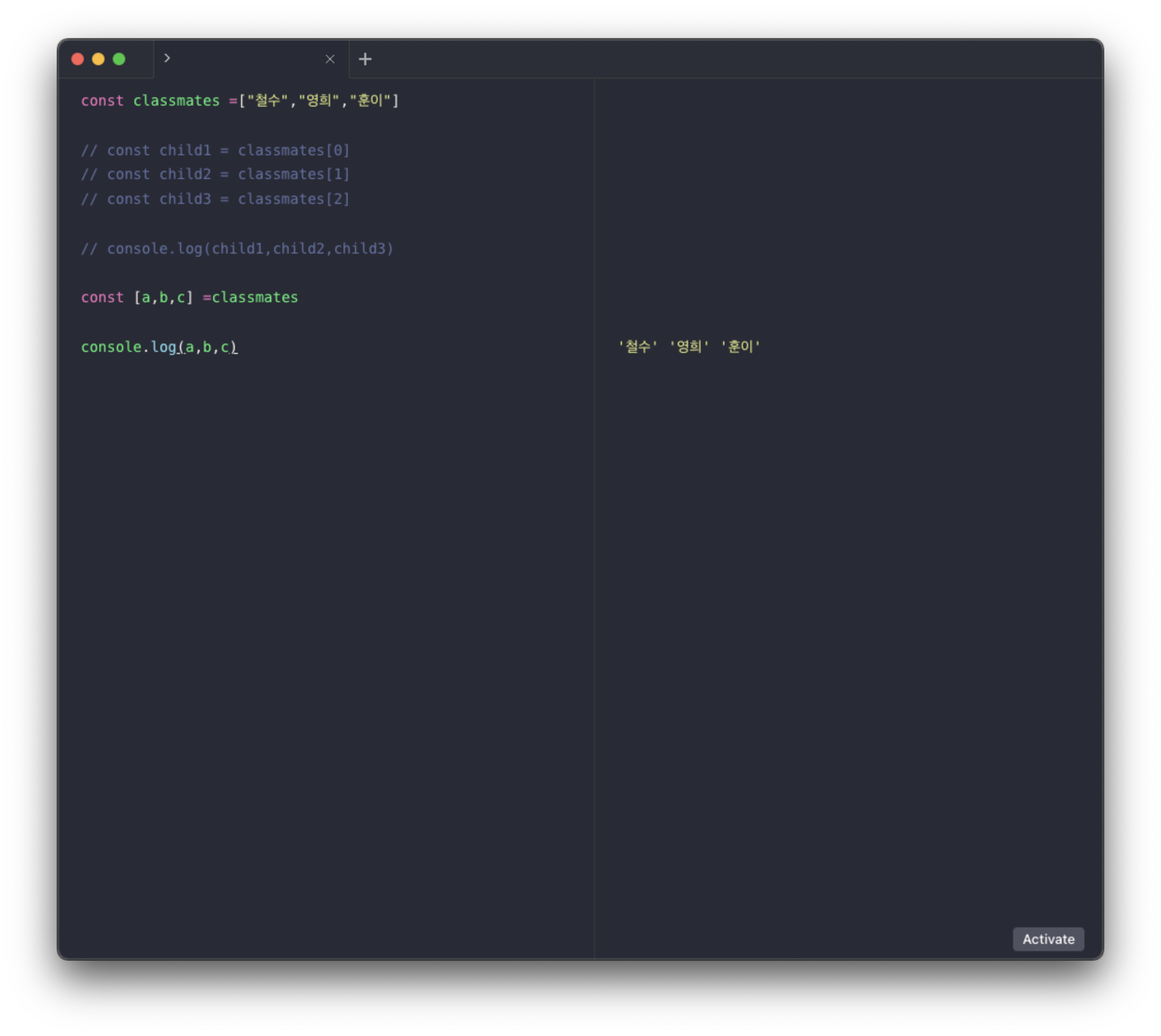구조분해 할당에 더 다양한 예시들은 따로 블로그에 적어 두었다
