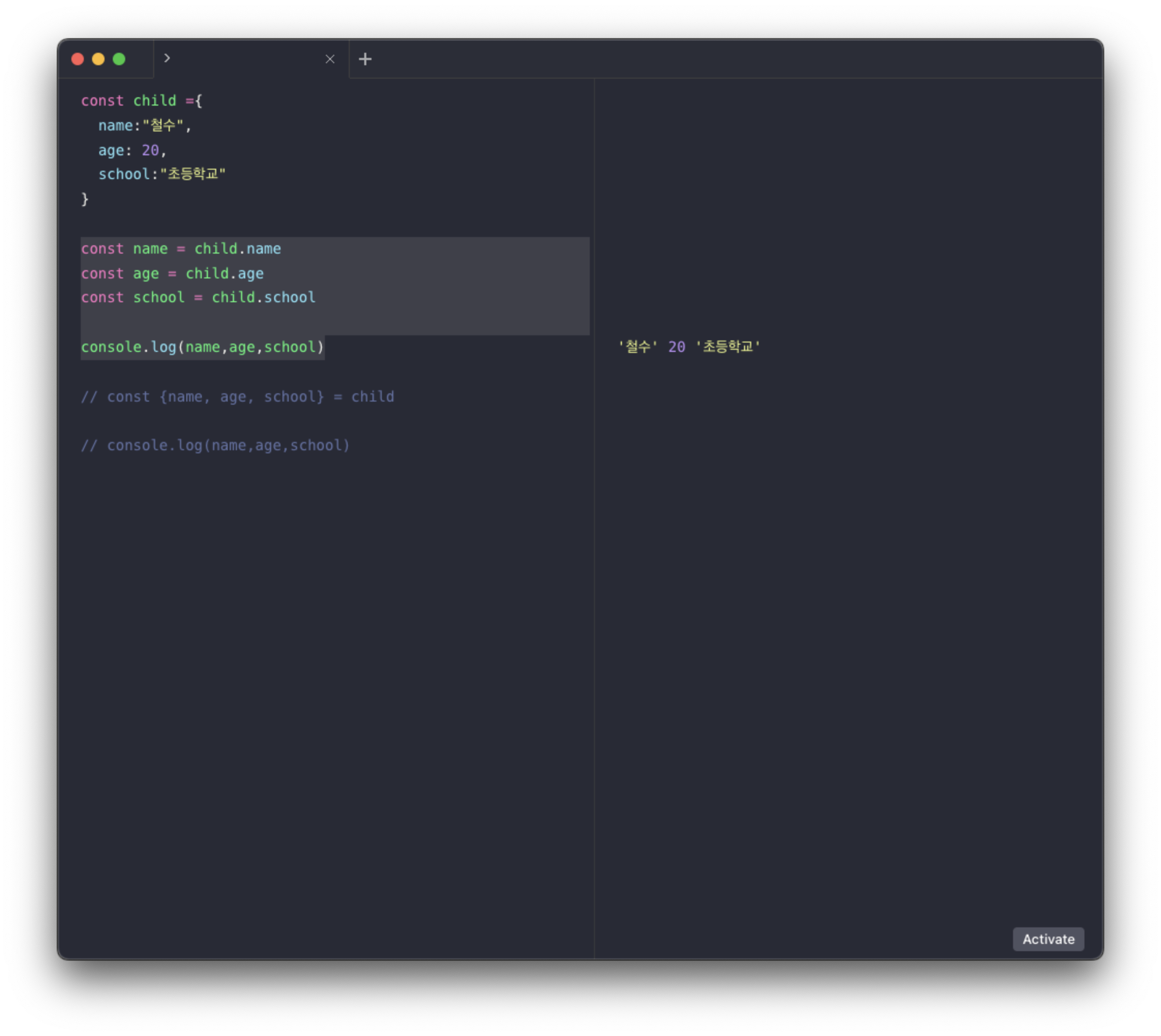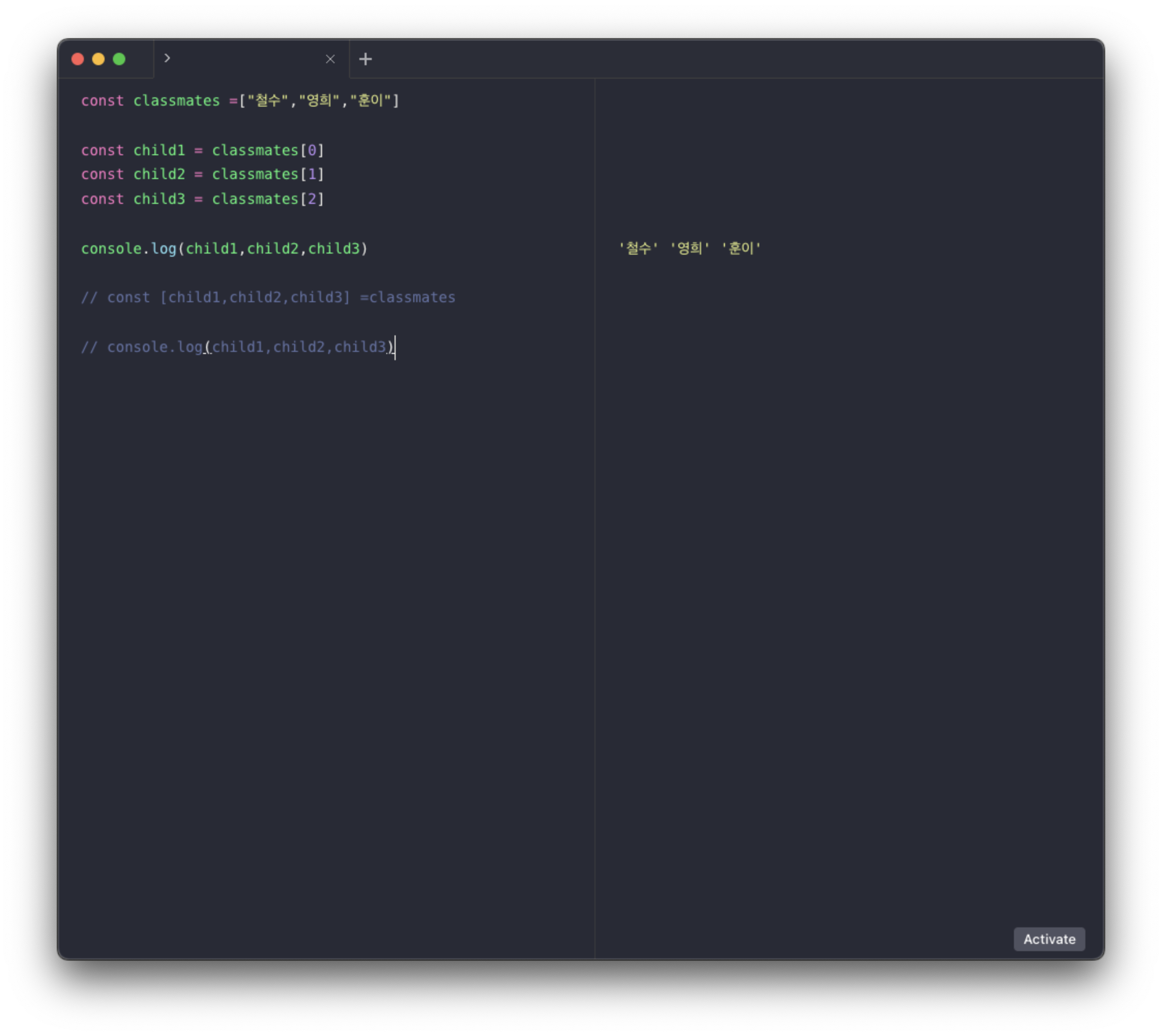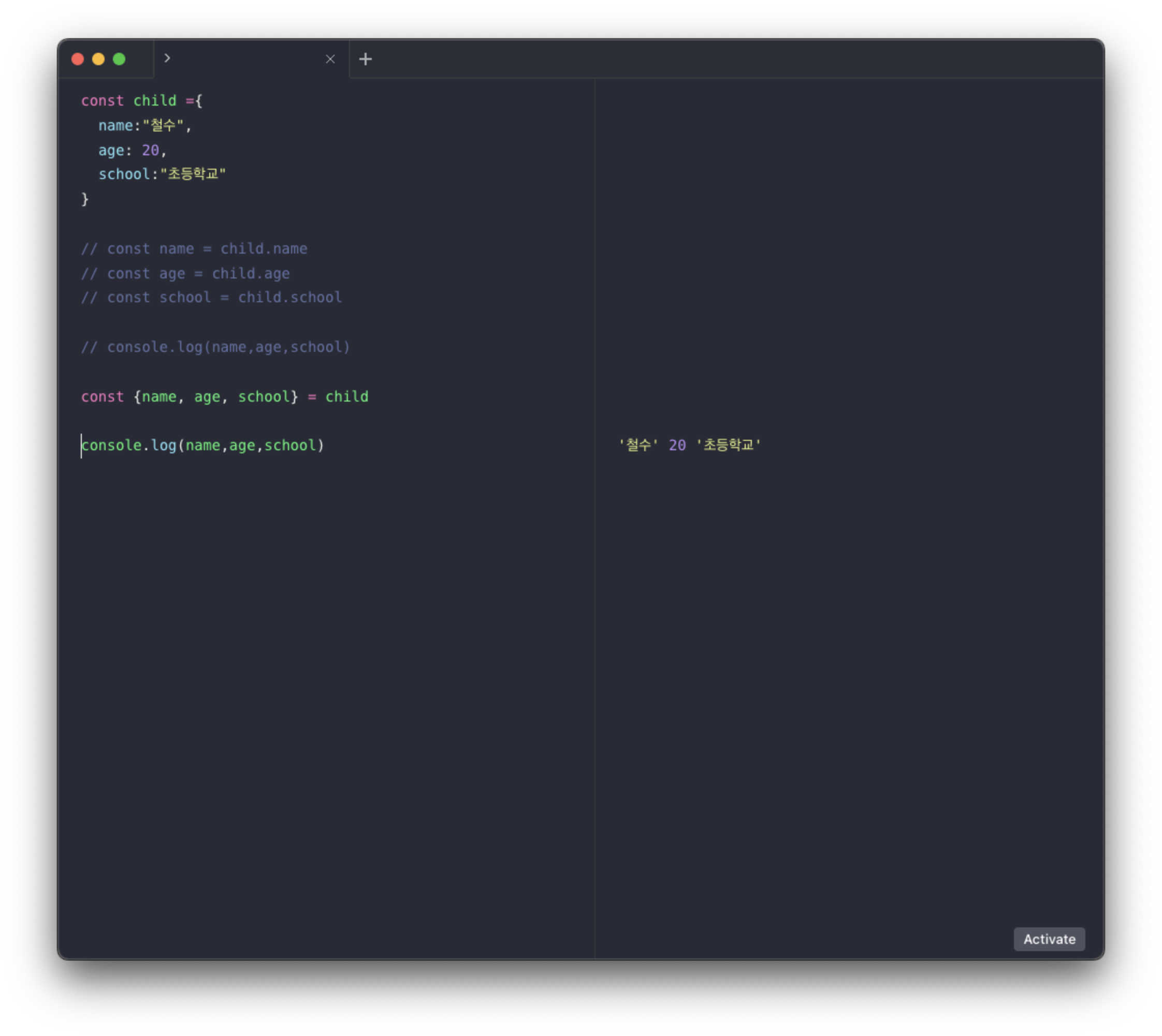 구조분해 할당에 더 다양한 예시들은 따로 블로그에 적어 두었다