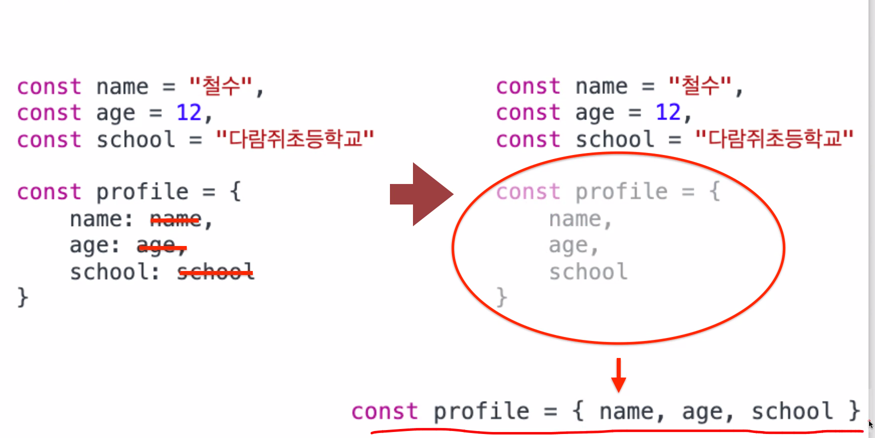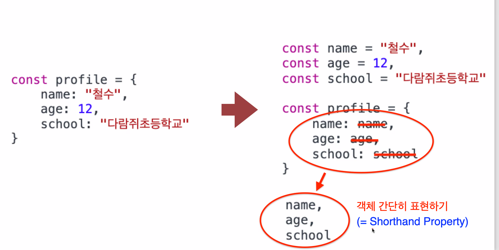 shorthand property 은 객체에서 key와 value명이 같은 경우 축약해서 사용할 수 있게 만들어주는 문법입니다.