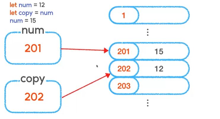 값의 비교를 좀더 깊이 이해할려면 데이터 타입에 따른 값의 복사를 알면 위의 두 연산자가 어떤 식으로 다른지 더 정확히 알수 있다