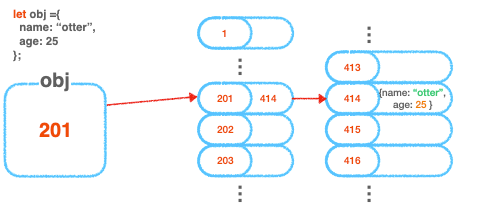 쉽게 생각해서 객체의 껍데기를 주머니(201번 메모리),