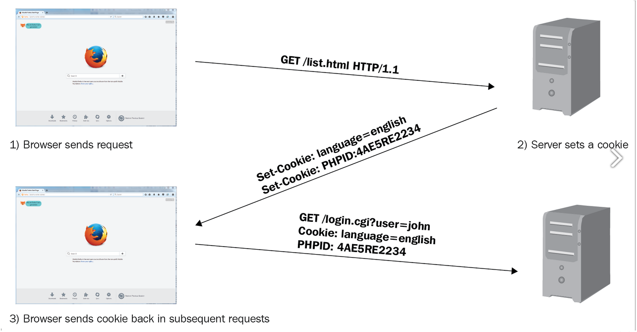 클라이언트가 어떤 사이트를 방문할때 그 사이트가 사용하고 있는 서버를 통해 클라이언트의 브라우저에 설치되는 작은 기록 정보 파일이다 각 사용자마다 브라우저에 정보를 저장하니 고유정보 식별이 가능하다.